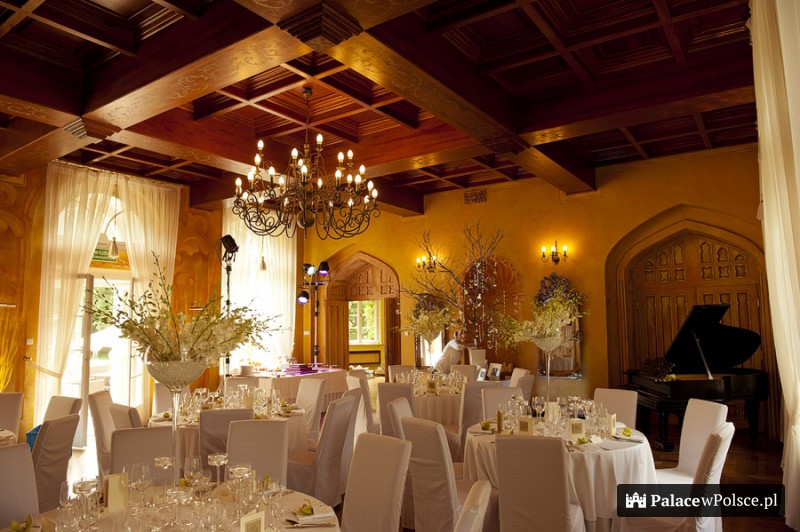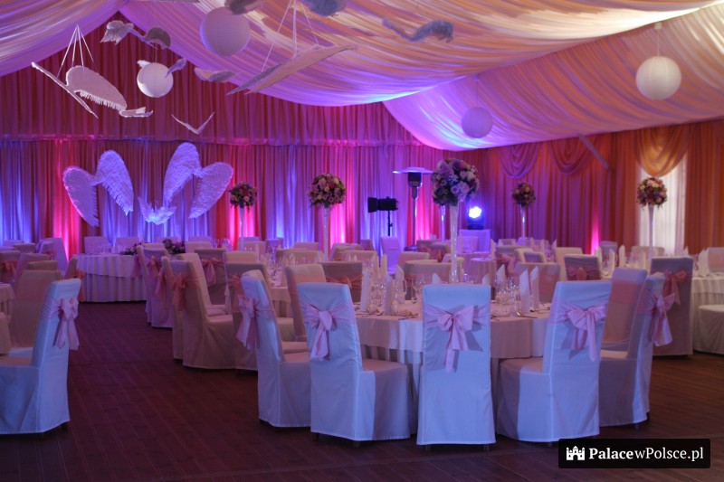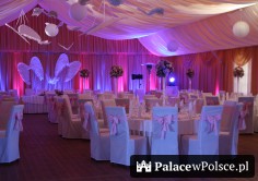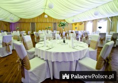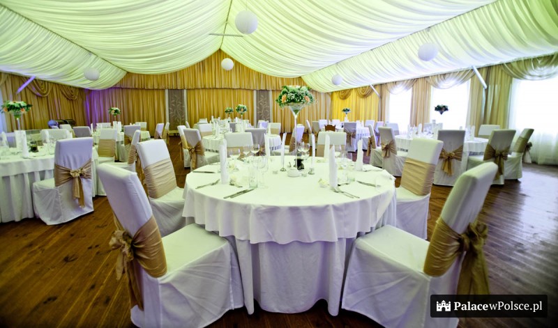 W salach pałacowych organizujemy wesela do 80 osób, większe w przepięknym pawilonie usadowionym na skraju parku, w którym ugościmy do 160 osób.